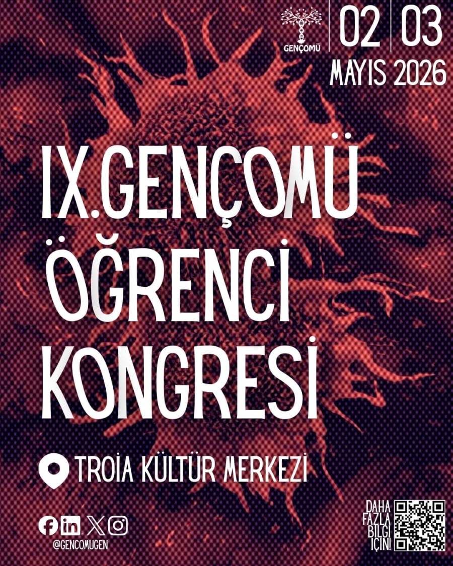 IX. GENÇOMÜ Öğrenci Kongresi, 2–3 Mayıs 2026 tarihlerinde Troia Kültür Merkezi’nde gerçekleştirilecektir. Kongre kapsamında, alanında uzman akademisyenlerin katılımıyla bilimsel sunumlar yapılacak ve kontenjanla sınırlı "Molecular Docking" atölyesi düzenlenecektir. Etkinlik sonunda katılımcılara katılım sertifikası verilecektir. Kongreye katılım ücretli olup, katılım sağlamak isteyenlerin aşağıdaki form üzerinden kayıt yaptırması gerekmektedir.